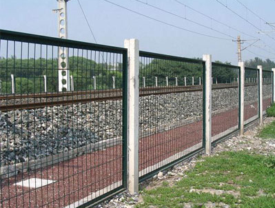 鐵路護欄網的規格:規格(高x寬) : 800 , 1000 , 1200 , 1500 , 1600 , 1800 , 2000 x3000毫米; 2600 x 2800 x 3000 x3000毫米 后角: 48 × 2.5 線規: 3mm, 4mm。 5mm,5mm ,4.5mm 5mm, 5mm4.5mm